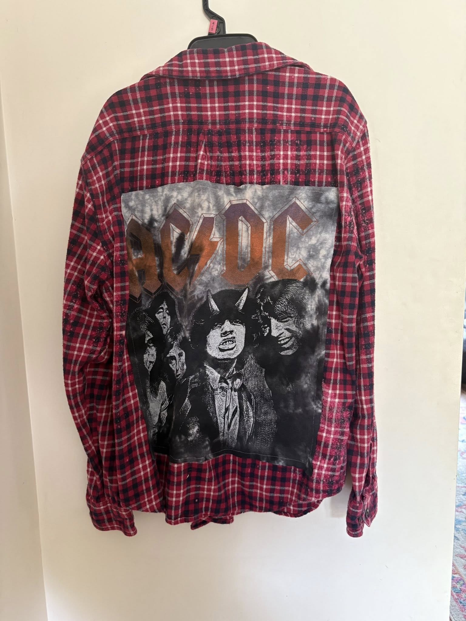 This one-of-a-kind acid-washed flannel in medium offers a cool unisex fit that’s perfect for breaking all the style rules. Featuring a bold AC/DC back graphic, it channels pure rock ‘n’ roll energy wherever you go. Throw it on and let your inner rocker shine with effortless attitude and laid-back flair.