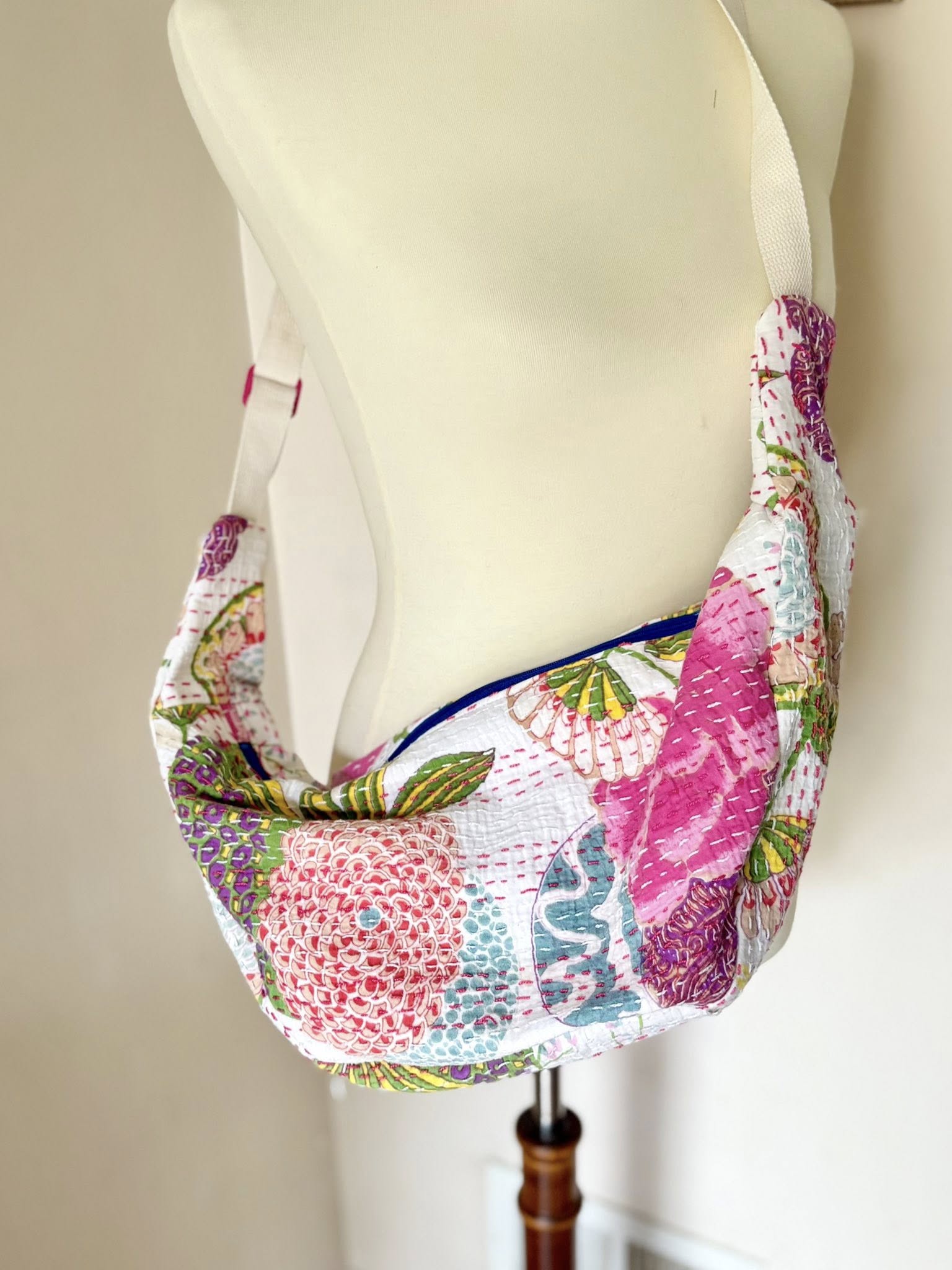 Carry your essentials in style with this one-of-a-kind sling purse! Featuring a gorgeous floral embroidered print, this playful accessory is fully lined with a handy inner pocket to keep your valuables organized. The adjustable strap lets you customize the fit for maximum comfort, whether you're running errands or heading out for an adventure. A unique piece that adds personality to any outfit!
