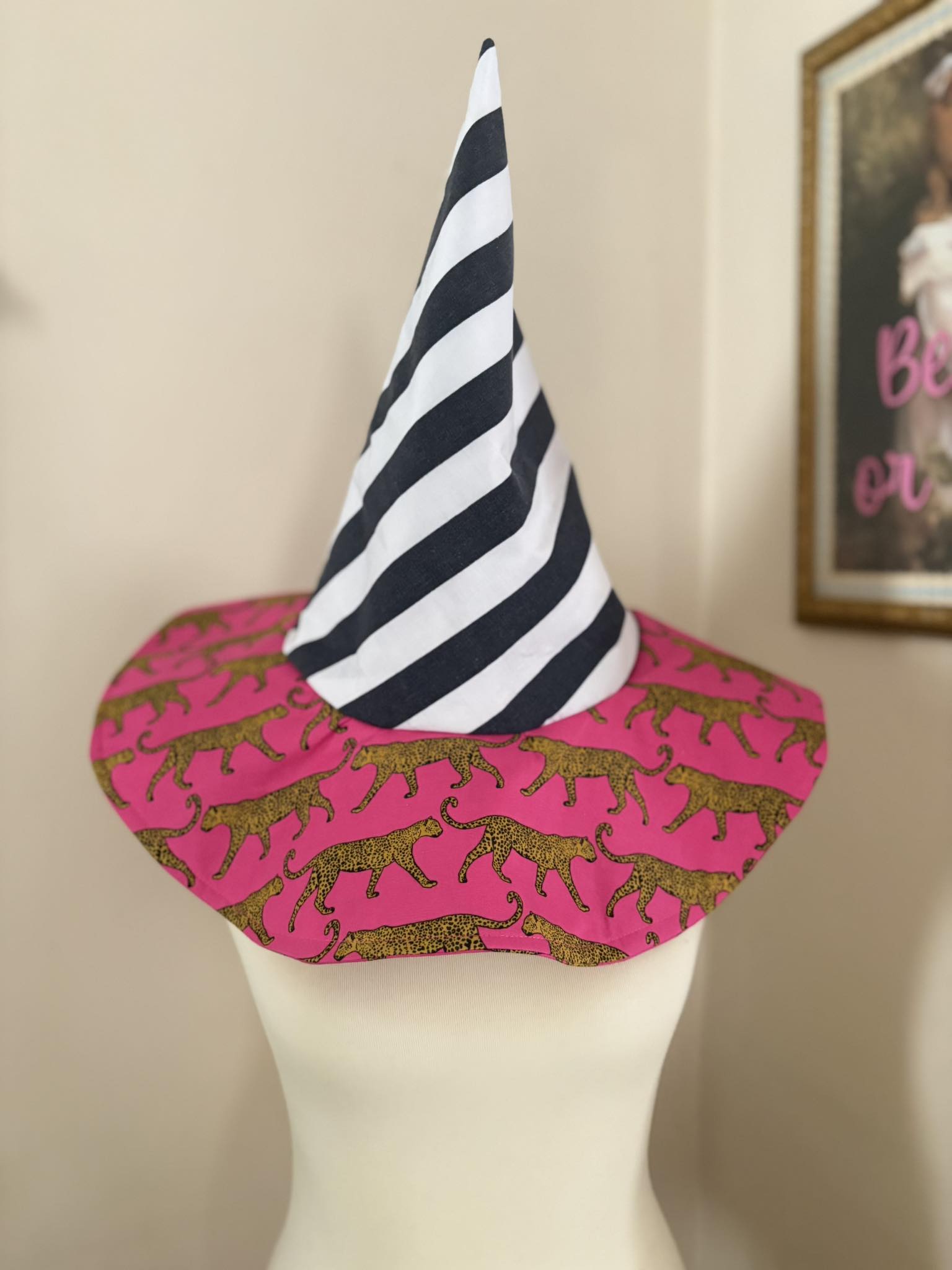 Pink cheetah witch hat